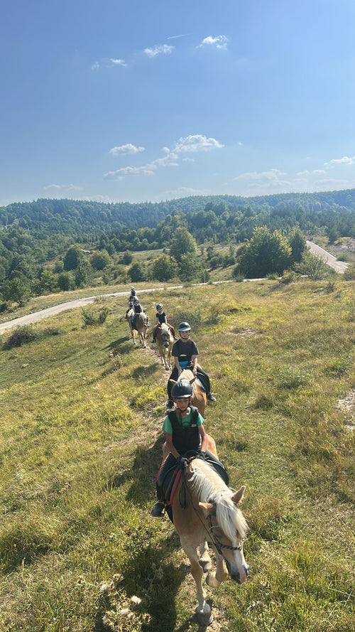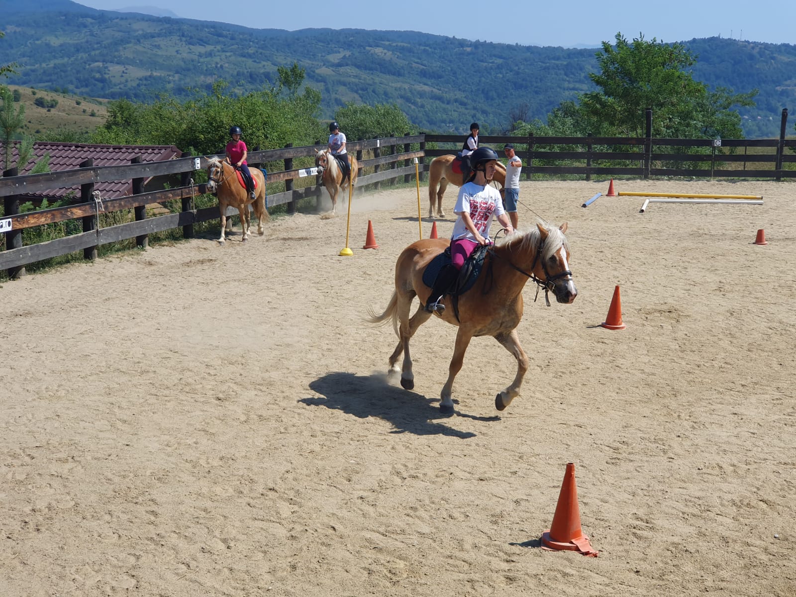 - Activitățile zilei includ lectii (1h/zi/dimineața), drumetii calare (1h/zi/după prânz) și multe alte ore în compania cailor. Programul zilei se poate modifica în funcție de condițiile meteo. În caz de ploaie, toate activitățile de echitație se desfășoară în manejul acoperit.