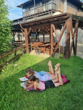 - Facem pauză de prânz, când ne distrăm și cu alte activități creative sau doar socializăm cu prietenii pe care ni-i facem în tabără