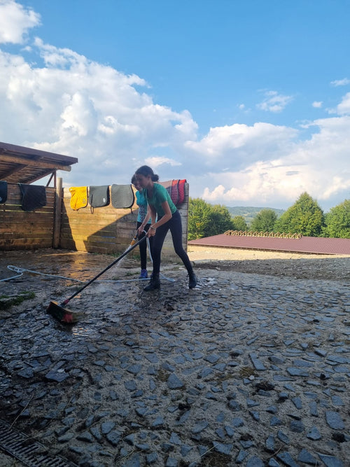 - Începem ziua cu un mic dejun delicios, după care aducem caii de la pășune, îi curățam, îi hrănim, pregătim harnașamentul. Pe scurt, ne pregătim pentru activitățile de echitație de peste zi.